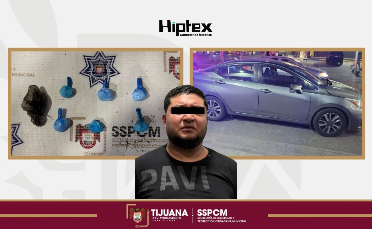 TIJUANA.- Elementos de la Policía Municipal aseguraron a un hombre por su probable responsabilidad en delitos contra la salud, durante un recorrido de vigilancia en la colonia Jardín Dorado.