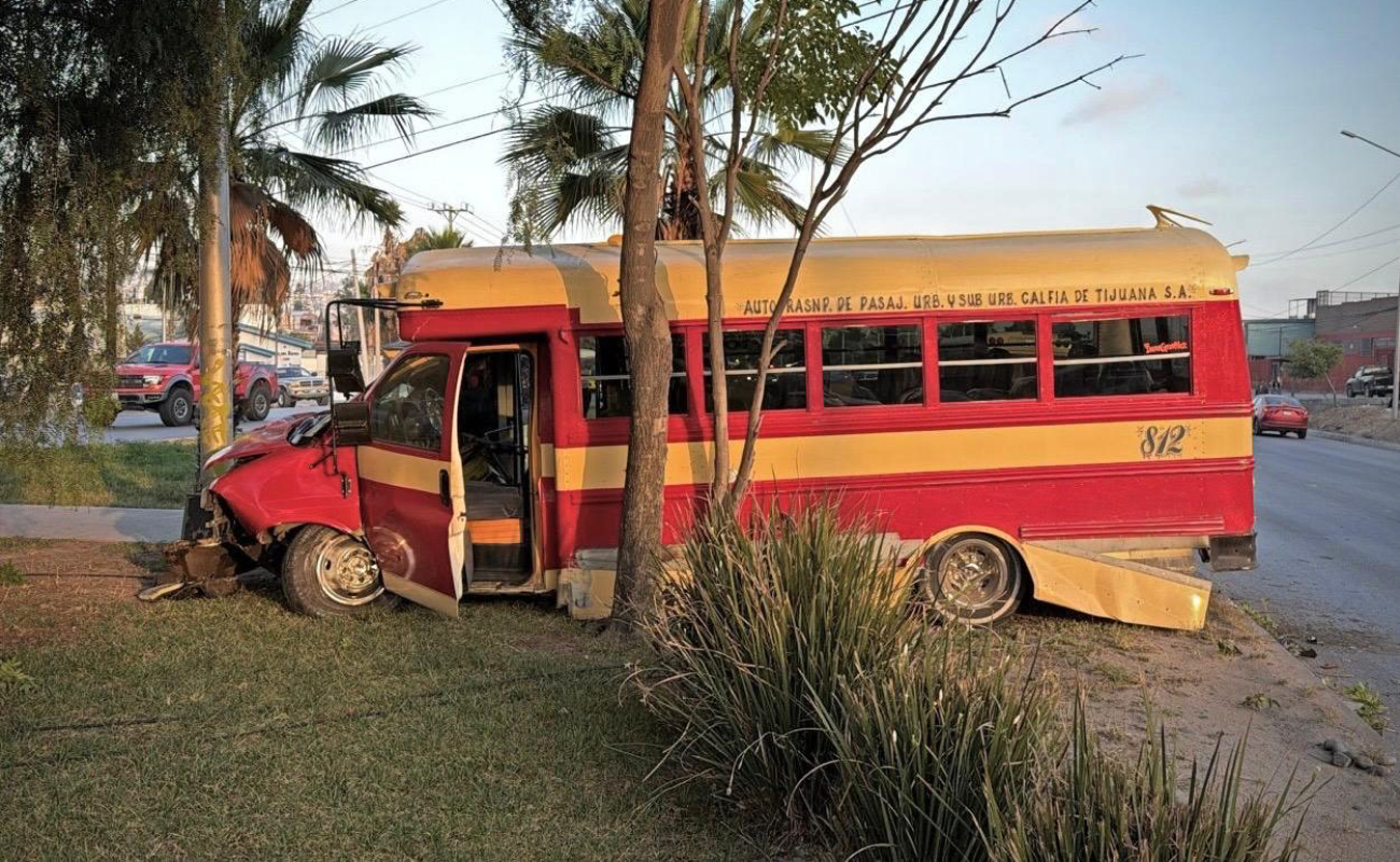 TIJUANA.- Un accidente vehicular se registró sobre el bulevar Insurgentes y avenida Cochimí, a la altura de la colonia Azteca, luego de que una unidad de transporte público presuntamente sufriera una falla mecánica durante la mañana de este lunes 20 de abril.